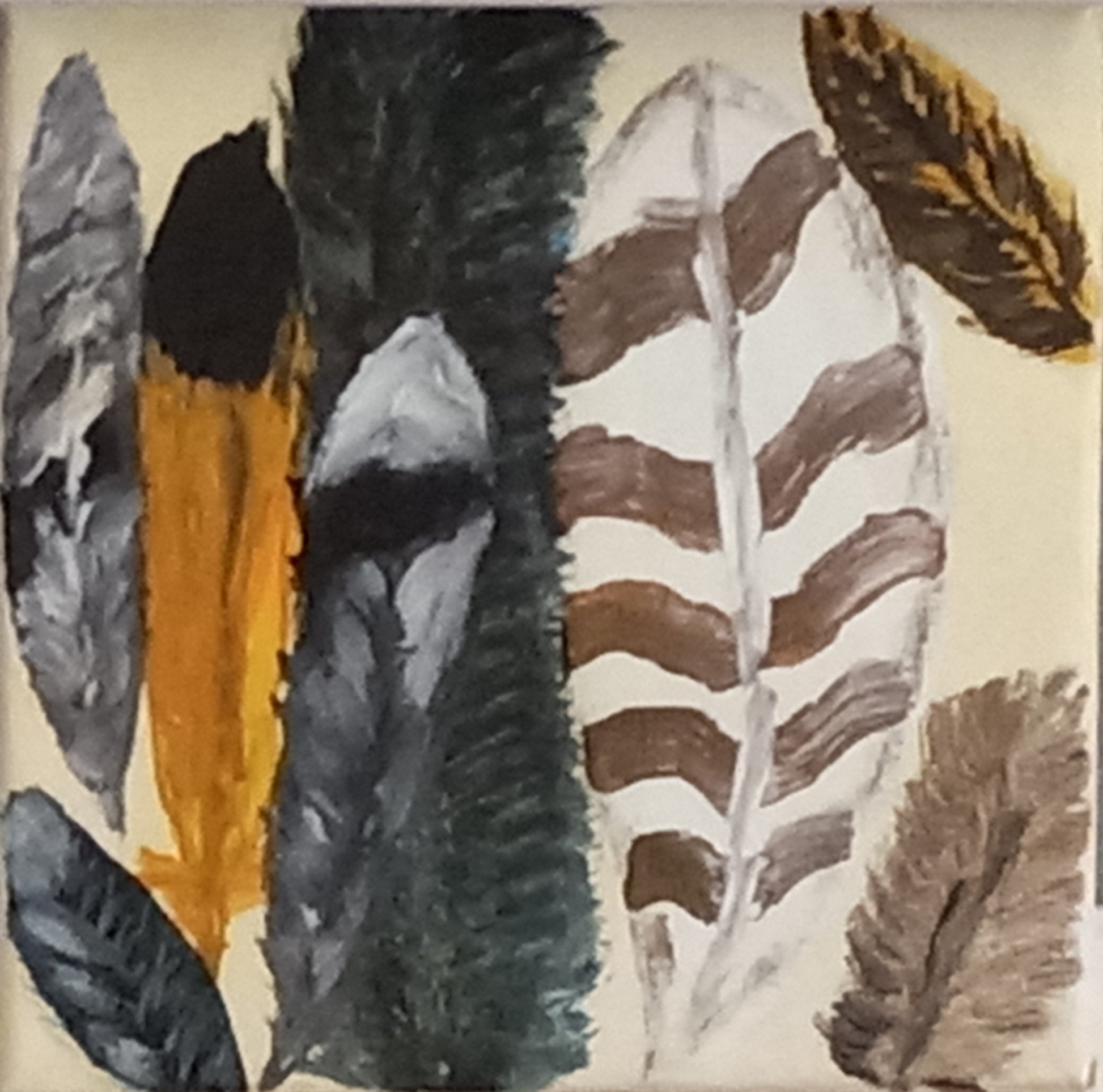 Acrylic painting on 5x5 canvas. Inspired by scripture Psalm 91:4, "He will cover you with his feathers, and under his wings you will find refuge; his faithfulness will be your shield and buckler."